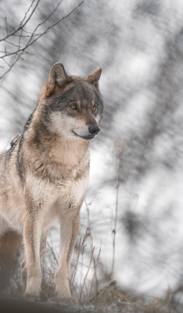 Wallpaper Big gray wolf stands in a cold forest