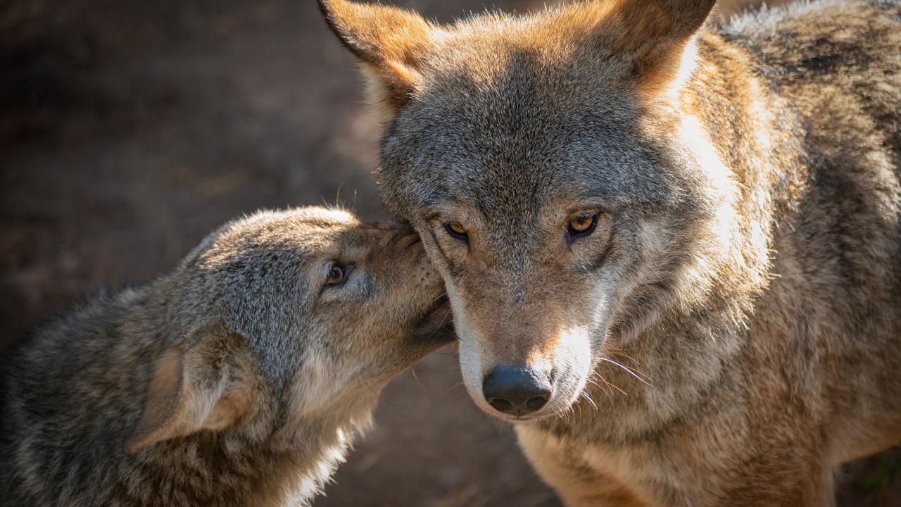 Wallpaper Big gray wolf with obedient she-wolf