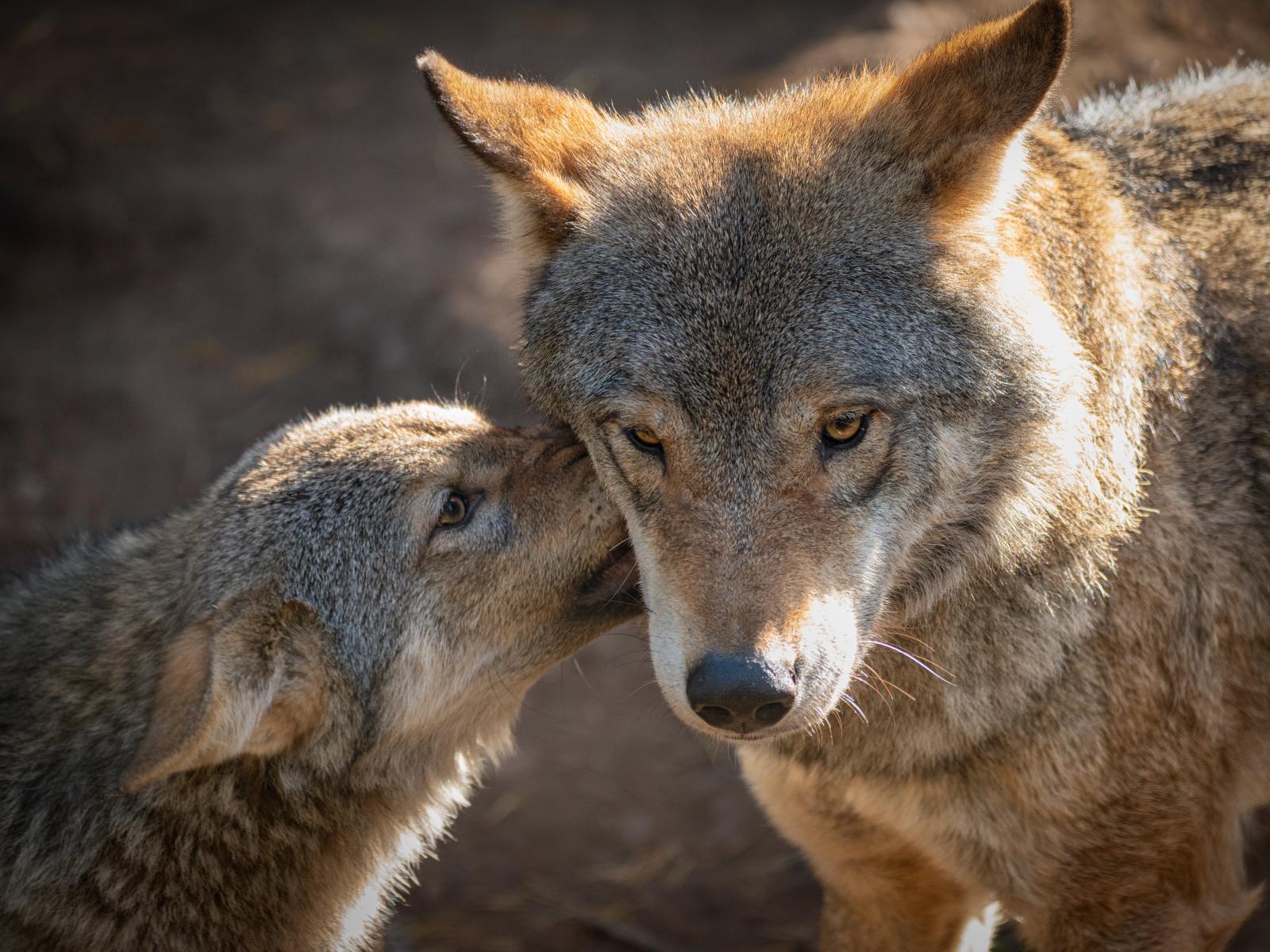 Wallpaper Big gray wolf with obedient she-wolf