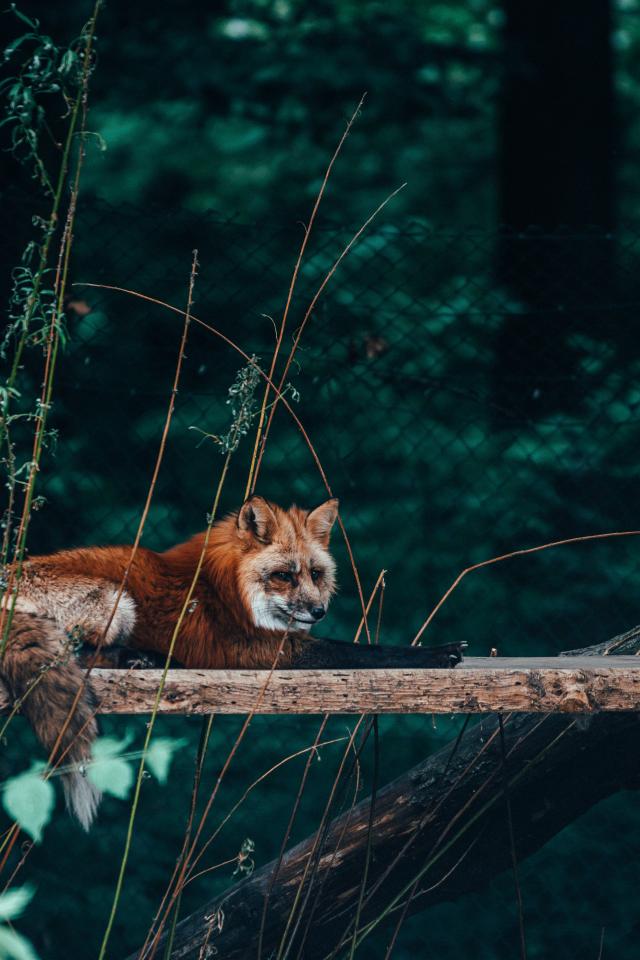 Wallpaper Red wolf lies on a blackboard at the zoo