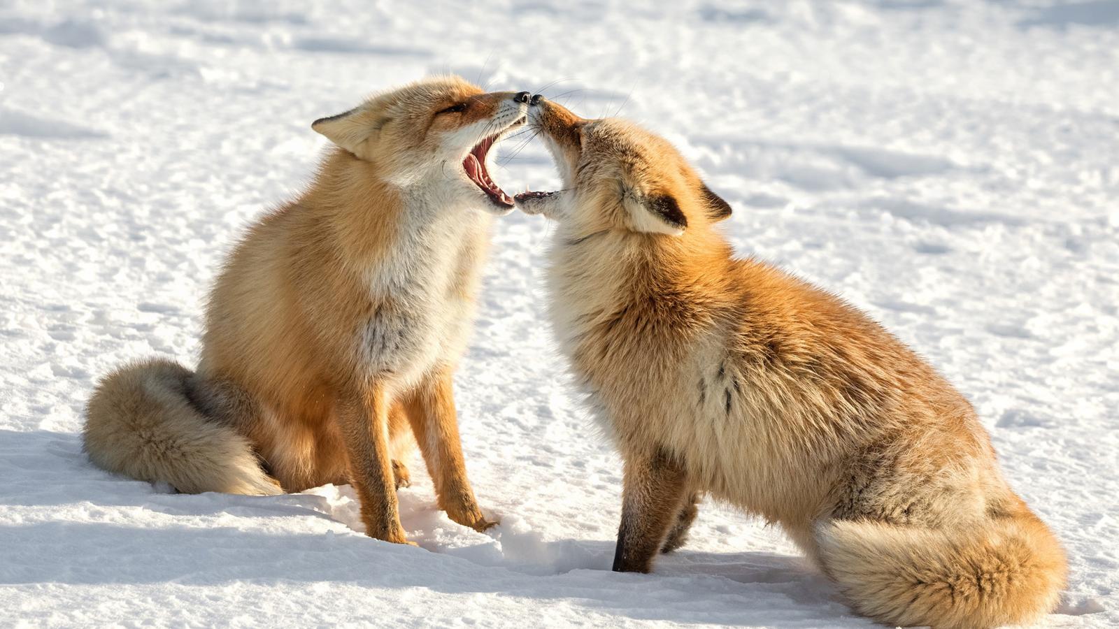 Wallpaper The struggle foxes in the snow