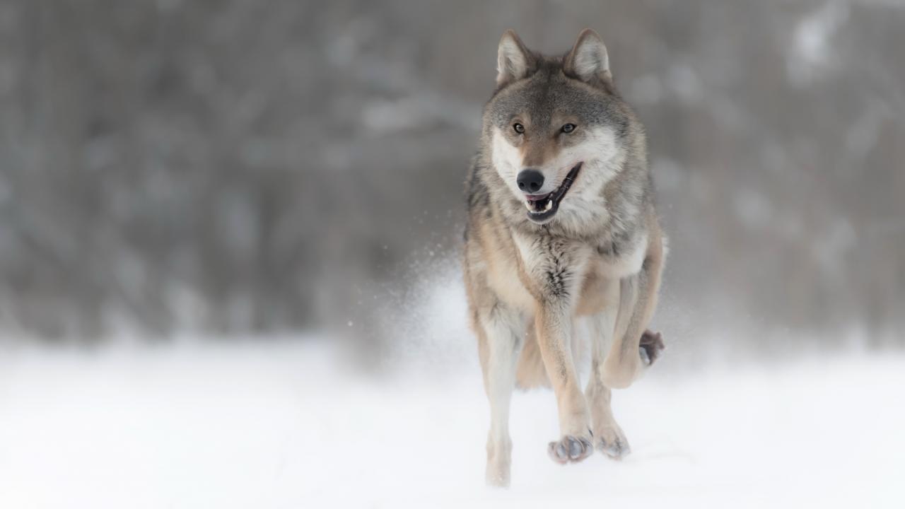 Wallpaper Serious look of a gray wolf in the snow in winter