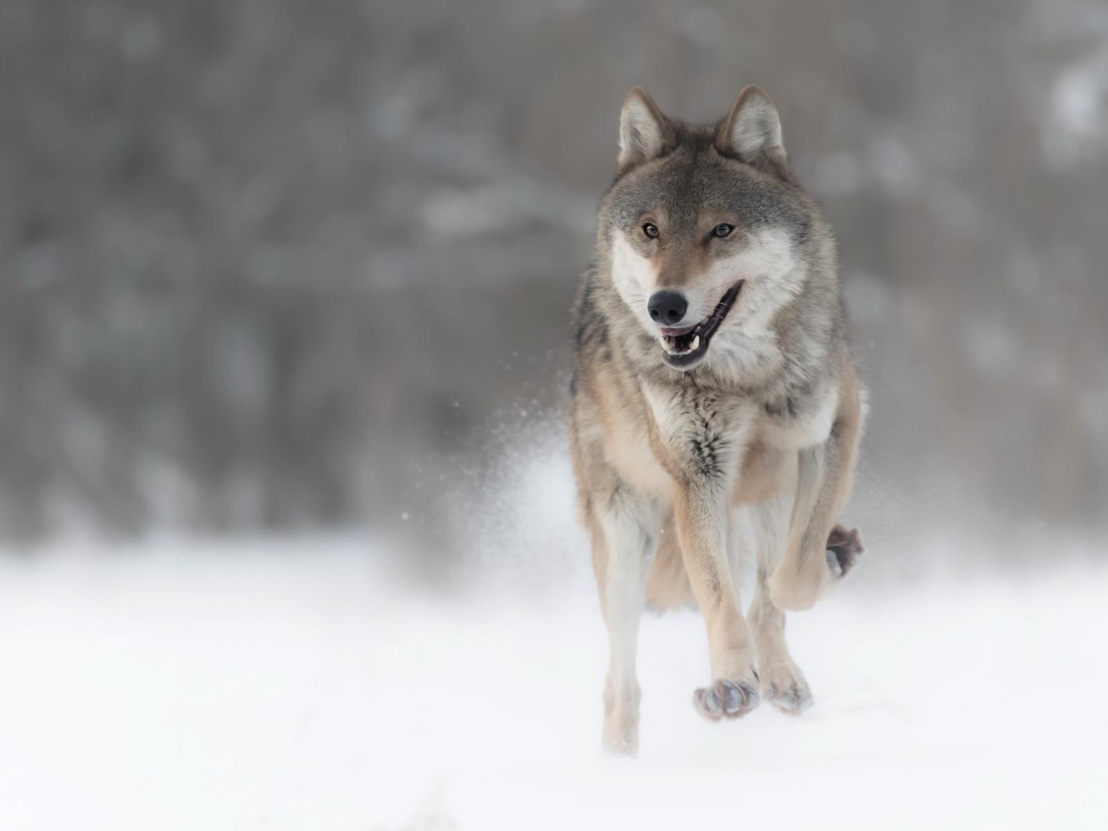 » Wallpaper Big gray wolf running in the snow