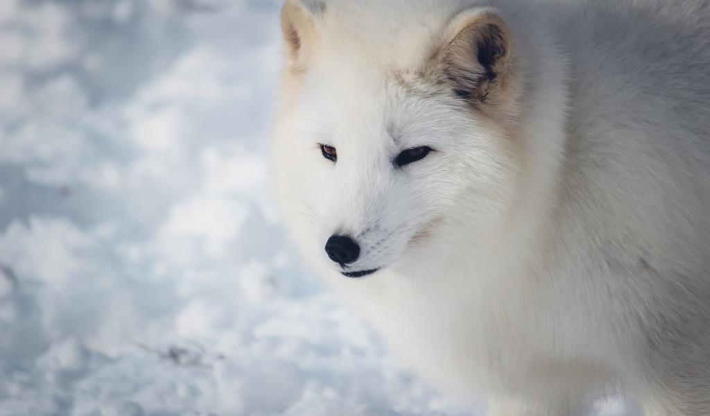 Wallpaper White fluffy arctic fox in the snow