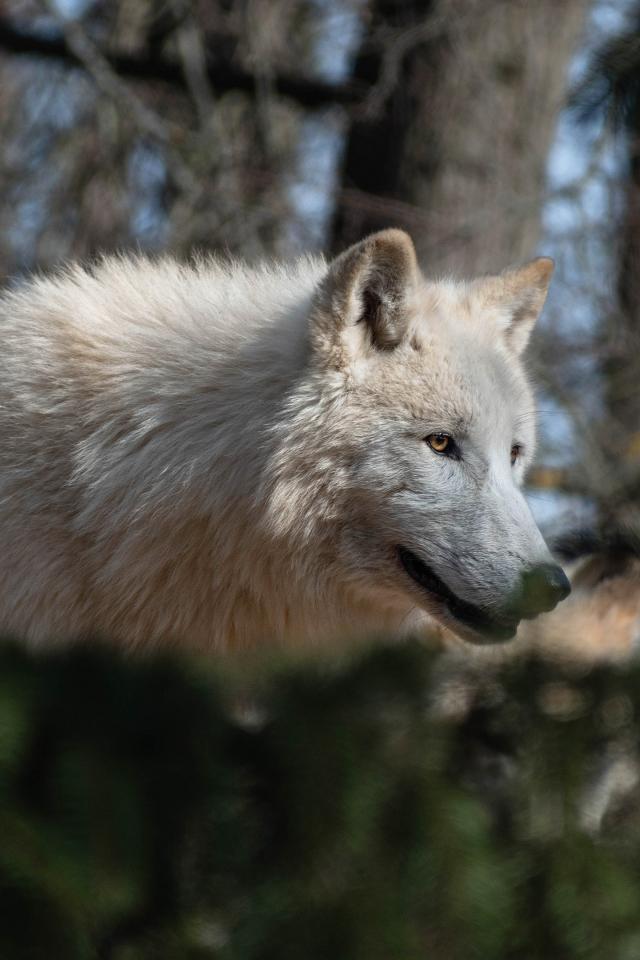 Wallpaper Big white wolf walks in the forest