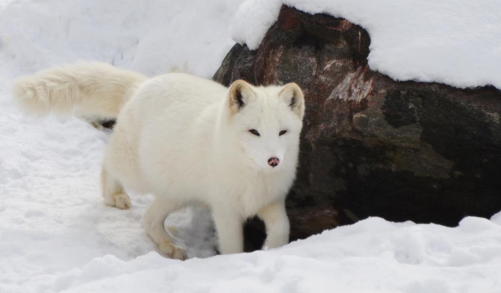 » Wallpaper White Arctic fox by the stone in winter