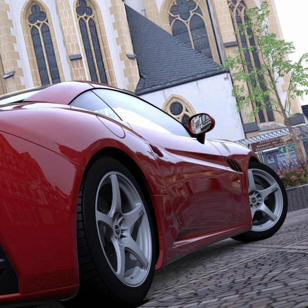Wallpaper Red sports car in the square at the Cathedral