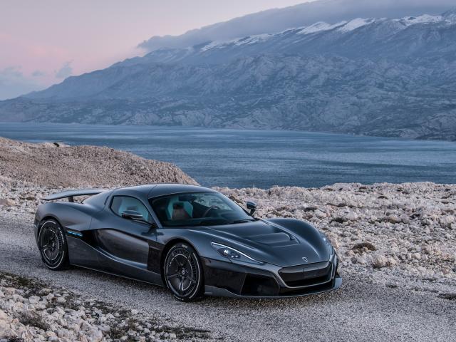 Wallpaper Black sports car Rimac C Two Geneva 2018