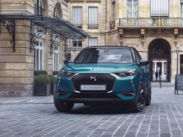 Wallpaper Blue 2018 SUV DS 3 Crossback on a city street