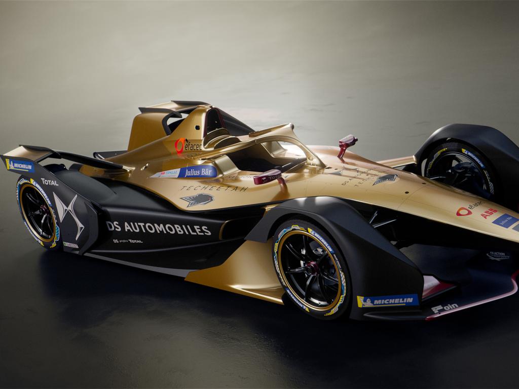 Wallpaper Racing car DS E-Tense FE 19 on a gray background