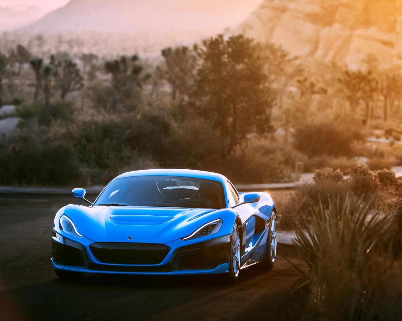 Wallpaper Blue sports car Rimac C Two California Edition front view