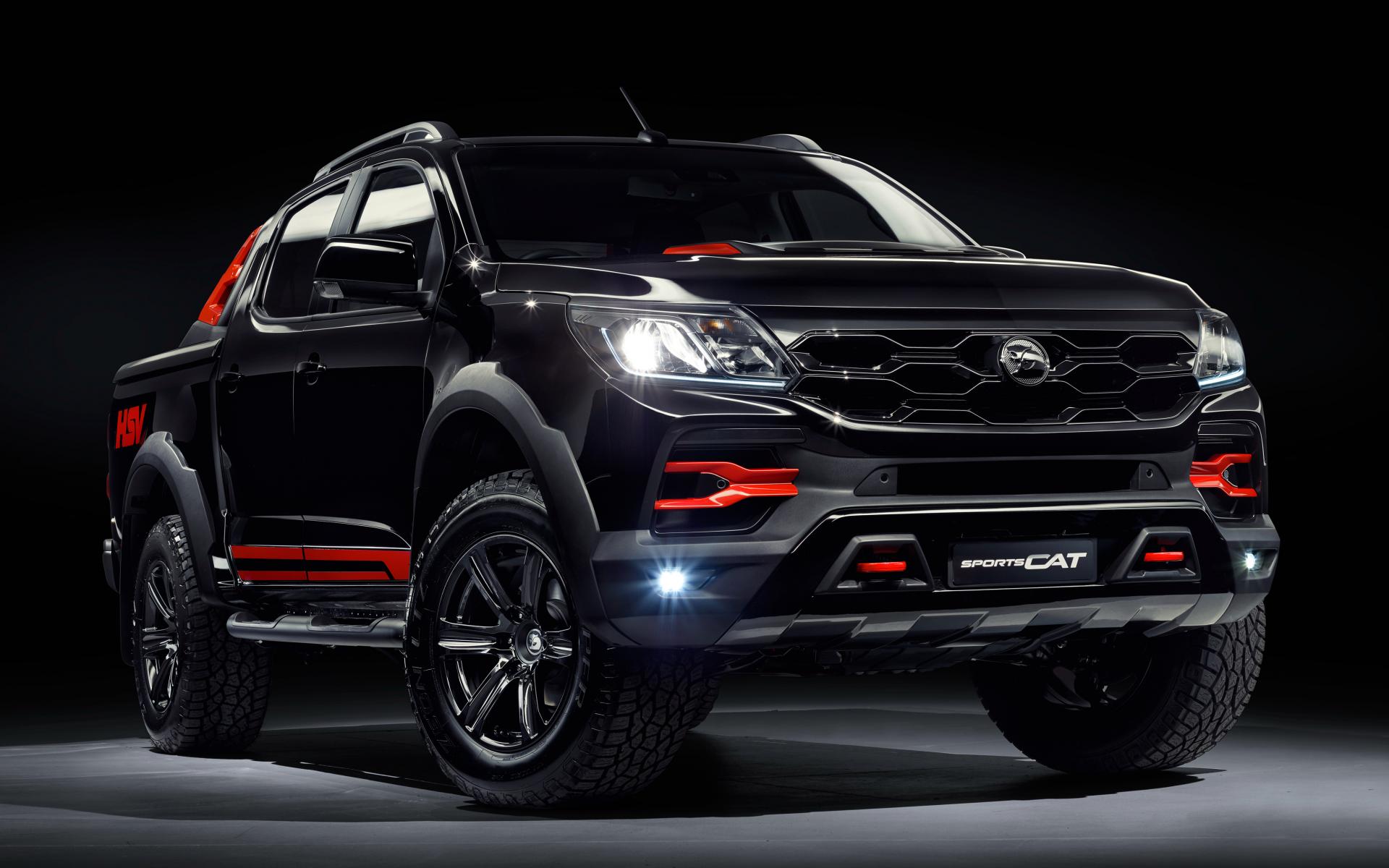 Wallpaper Black pickup HSV Colorado SportsCat R 2019 on a black background