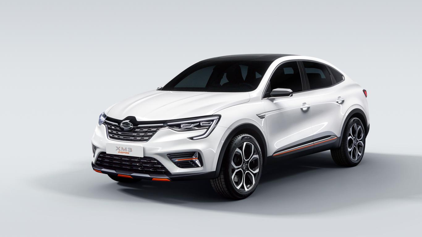 Wallpaper White car Samsung XM3 Inspire 2019 on a gray background