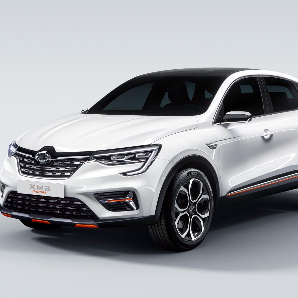 Wallpaper White car Samsung XM3 Inspire 2019 on a gray background
