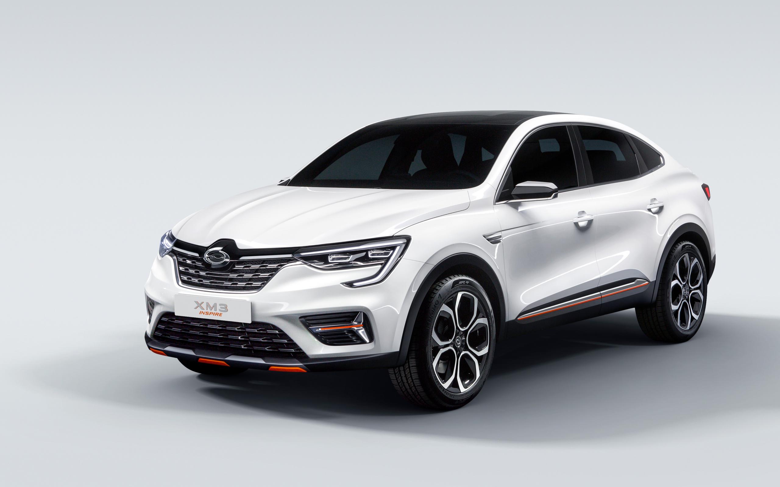 Wallpaper White car Samsung XM3 Inspire 2019 on a gray background