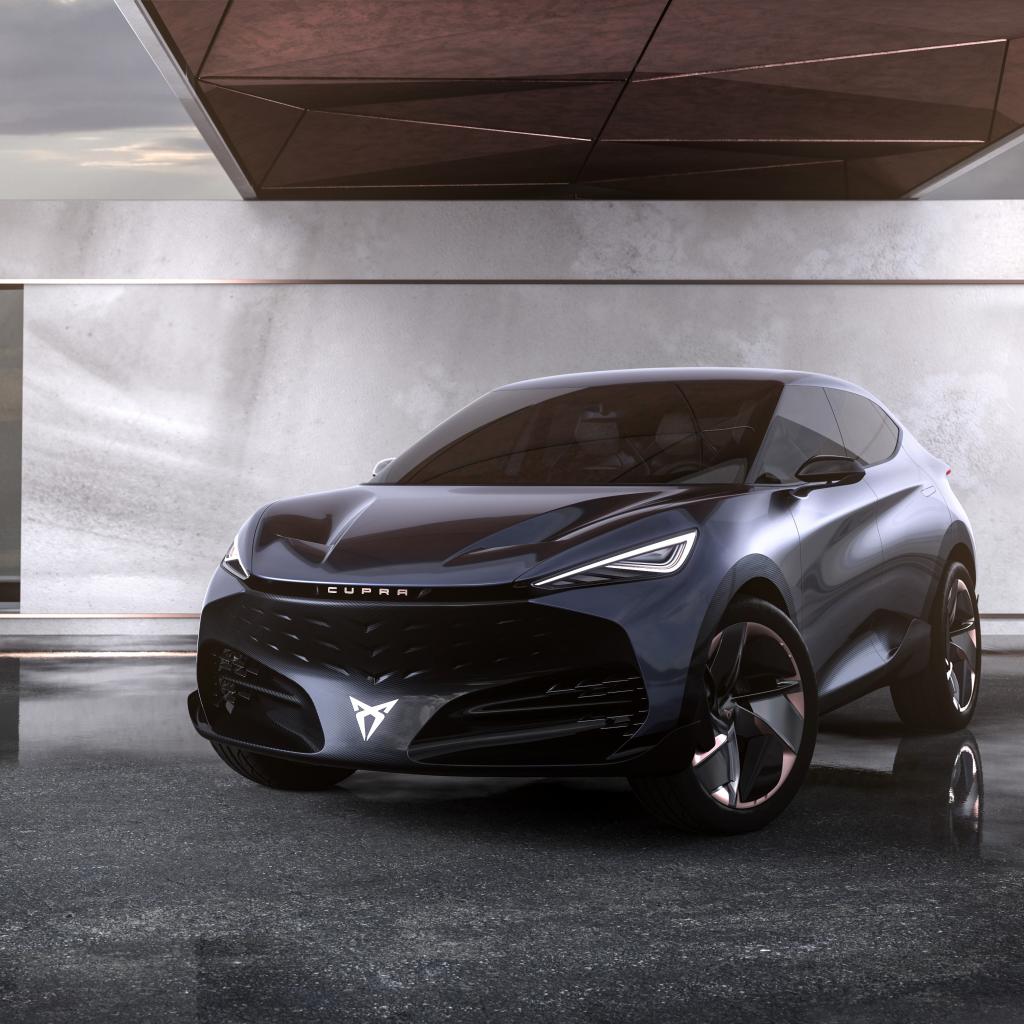 Wallpaper Black Cupra Tavascan Concept car in a building