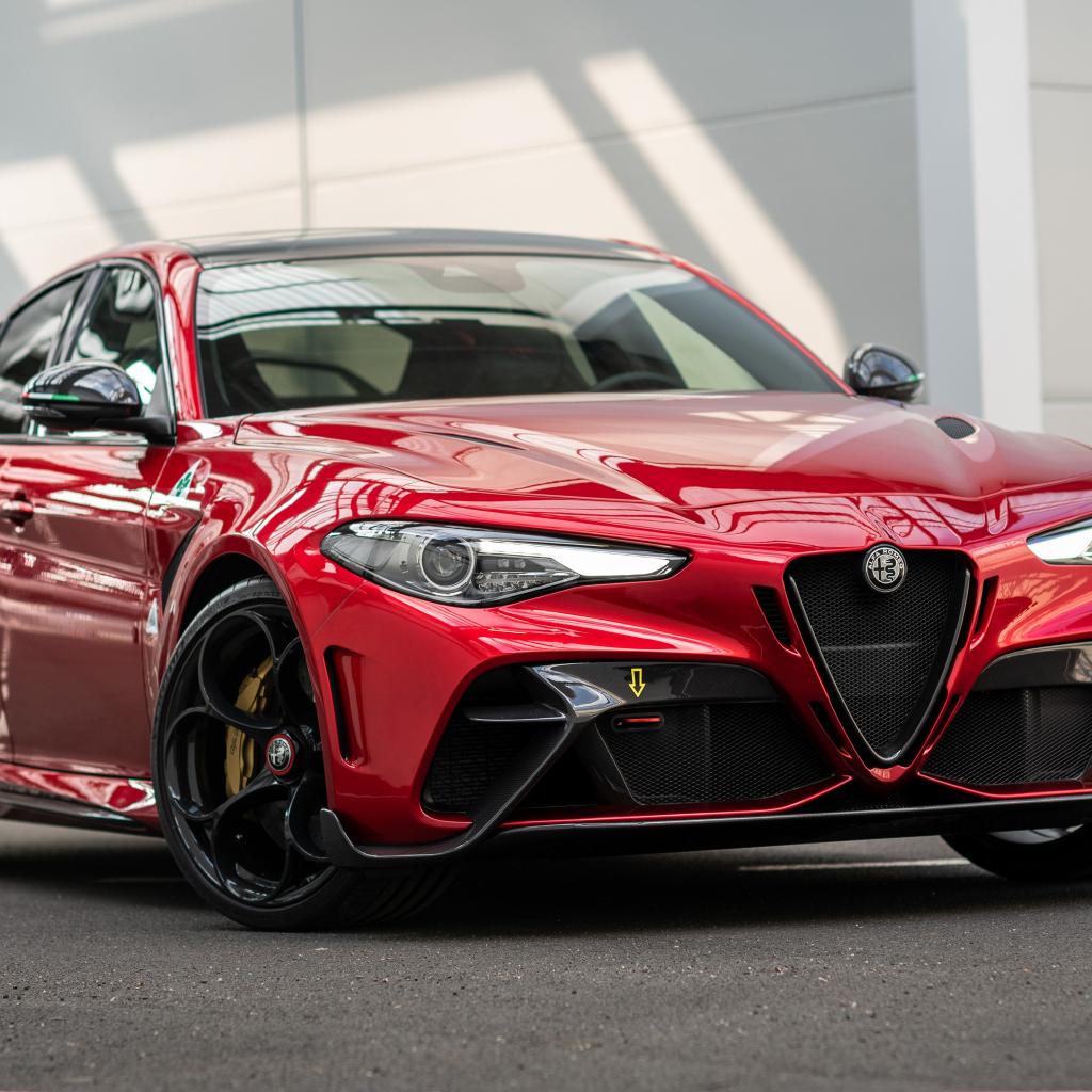 Wallpaper Red car 2020 Alfa Romeo Giulia GTAm at the garage