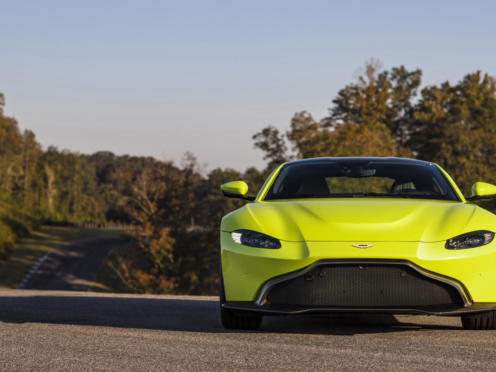 Wallpaper Yellow car Aston Martin Vantage, 2018 front view