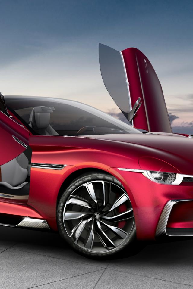 Wallpaper MG E-Motion burgundy electric car with open doors