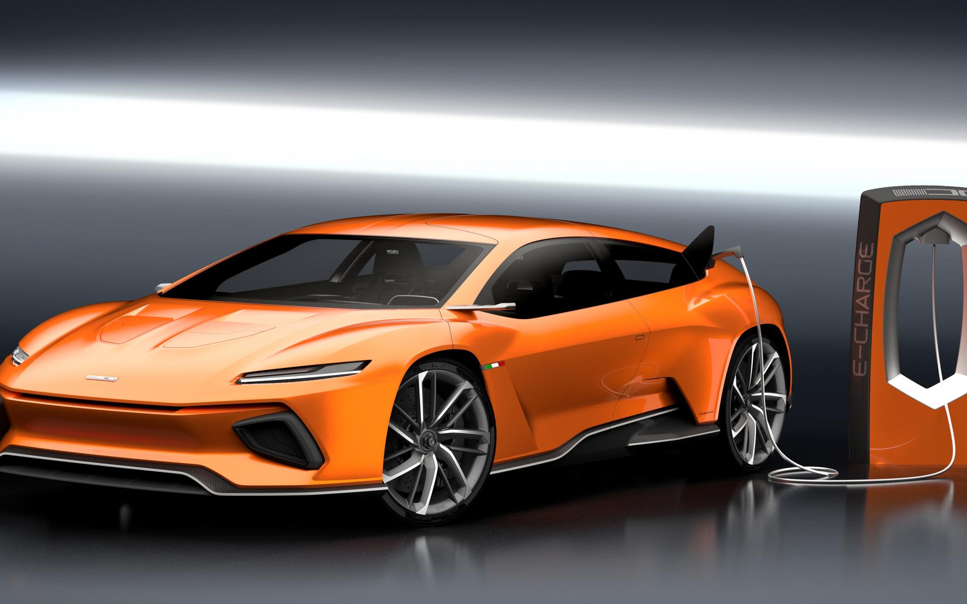 Wallpaper Orange electric car GT Zero at the gas station