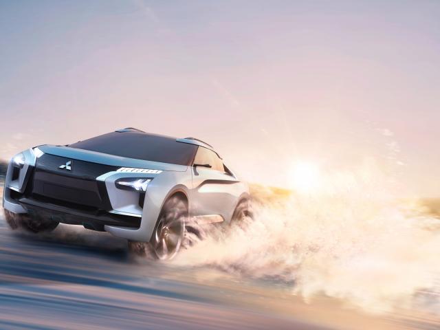 Wallpaper Mitsubishi e-Evolution electric off-road car on a sharp turn