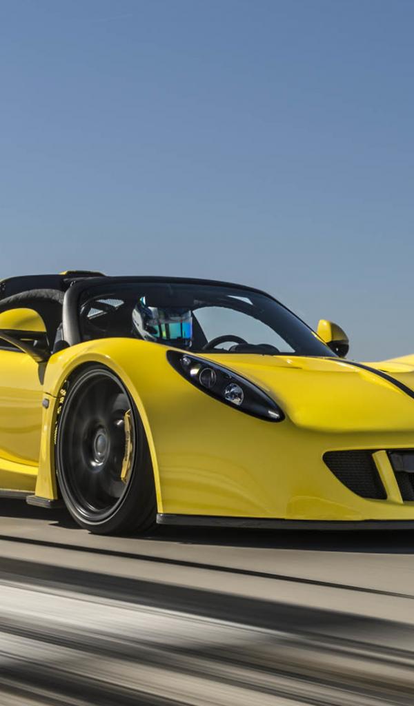 Wallpaper Yellow sports car Hennessey Venom GT on the track