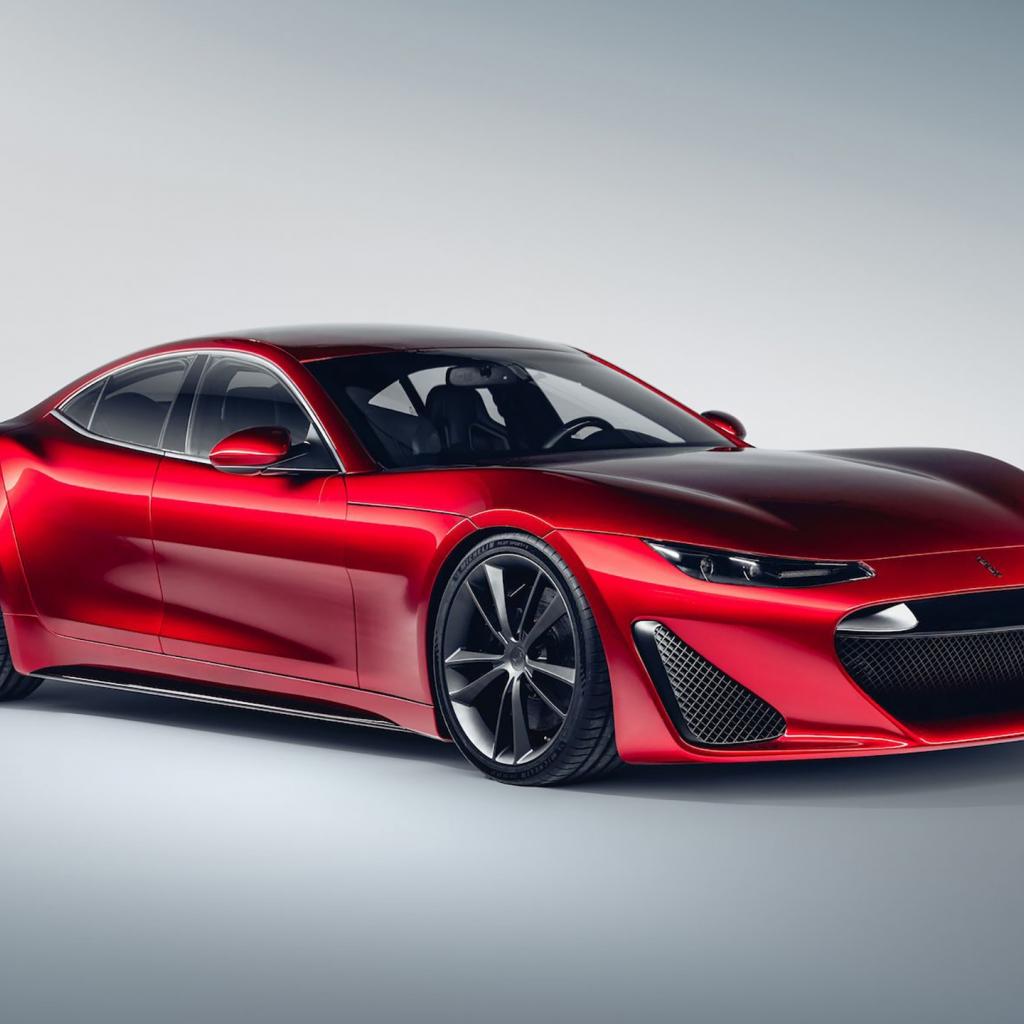 Wallpaper Red car Drako GTE, 2020 on a gray background