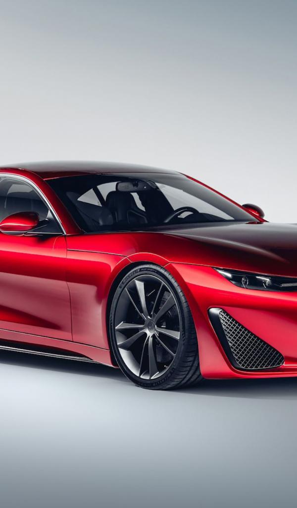 Wallpaper Red car Drako GTE, 2020 on a gray background