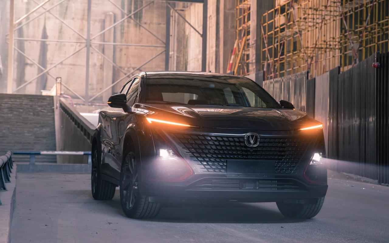 Wallpaper 2020 Changan UNI-T black car with headlights on