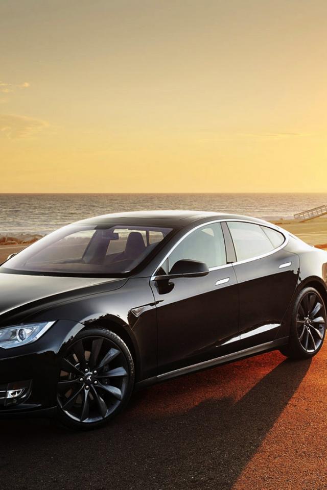 Wallpaper Black stylish electric Tesla Model S on the background of night city