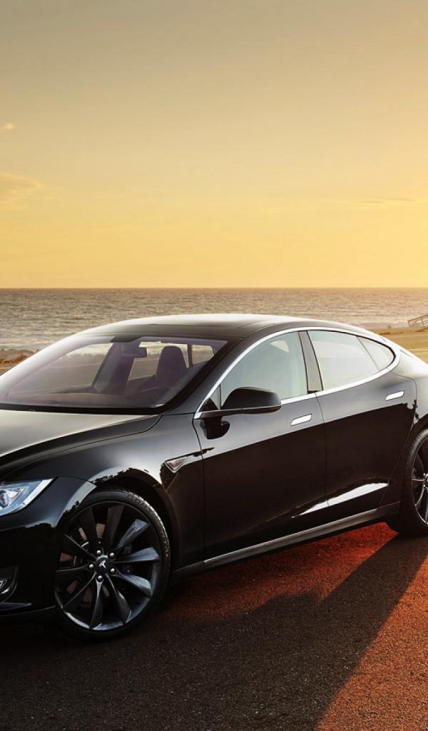 Wallpaper Black Tesla on the beach