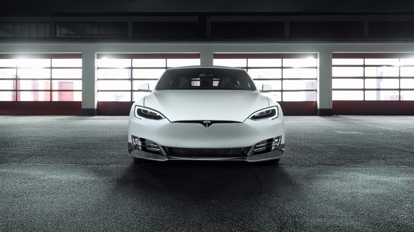 Wallpaper White electric vehicle Tesla Model S, front view
