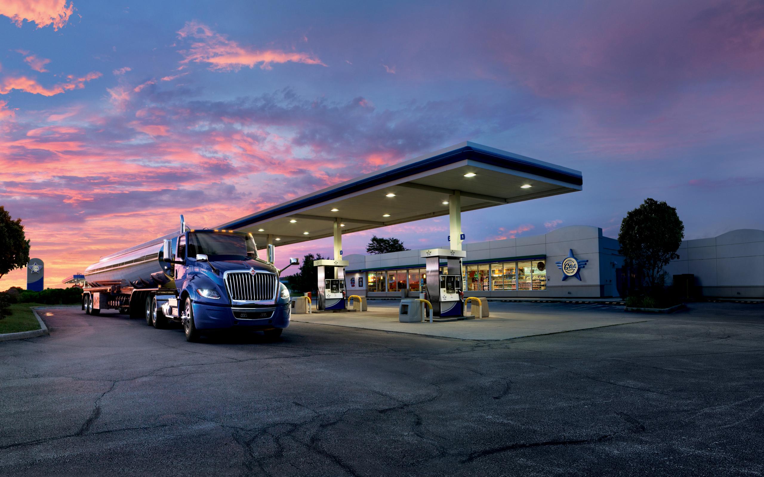 Wallpaper Big blue truck at the gas station