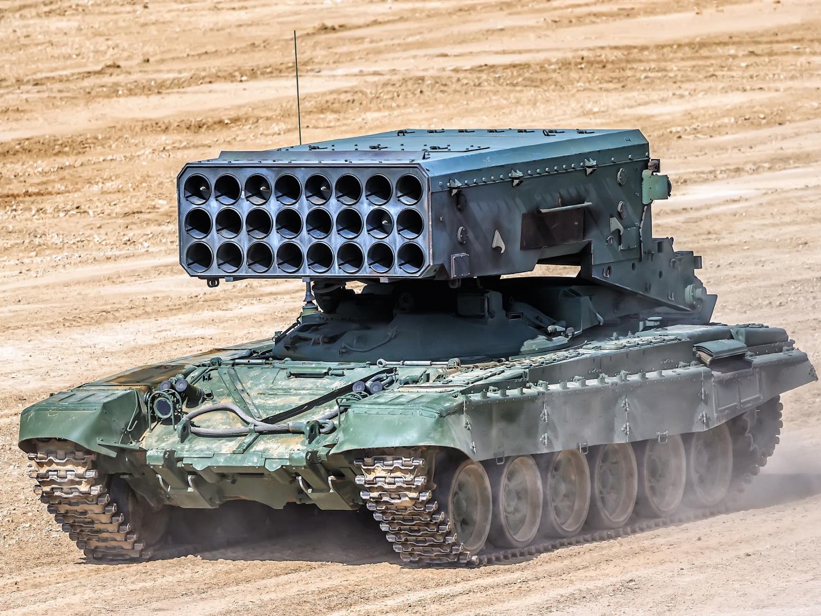 Wallpaper Russian combat vehicle BM-1 TOS-1A in the sand