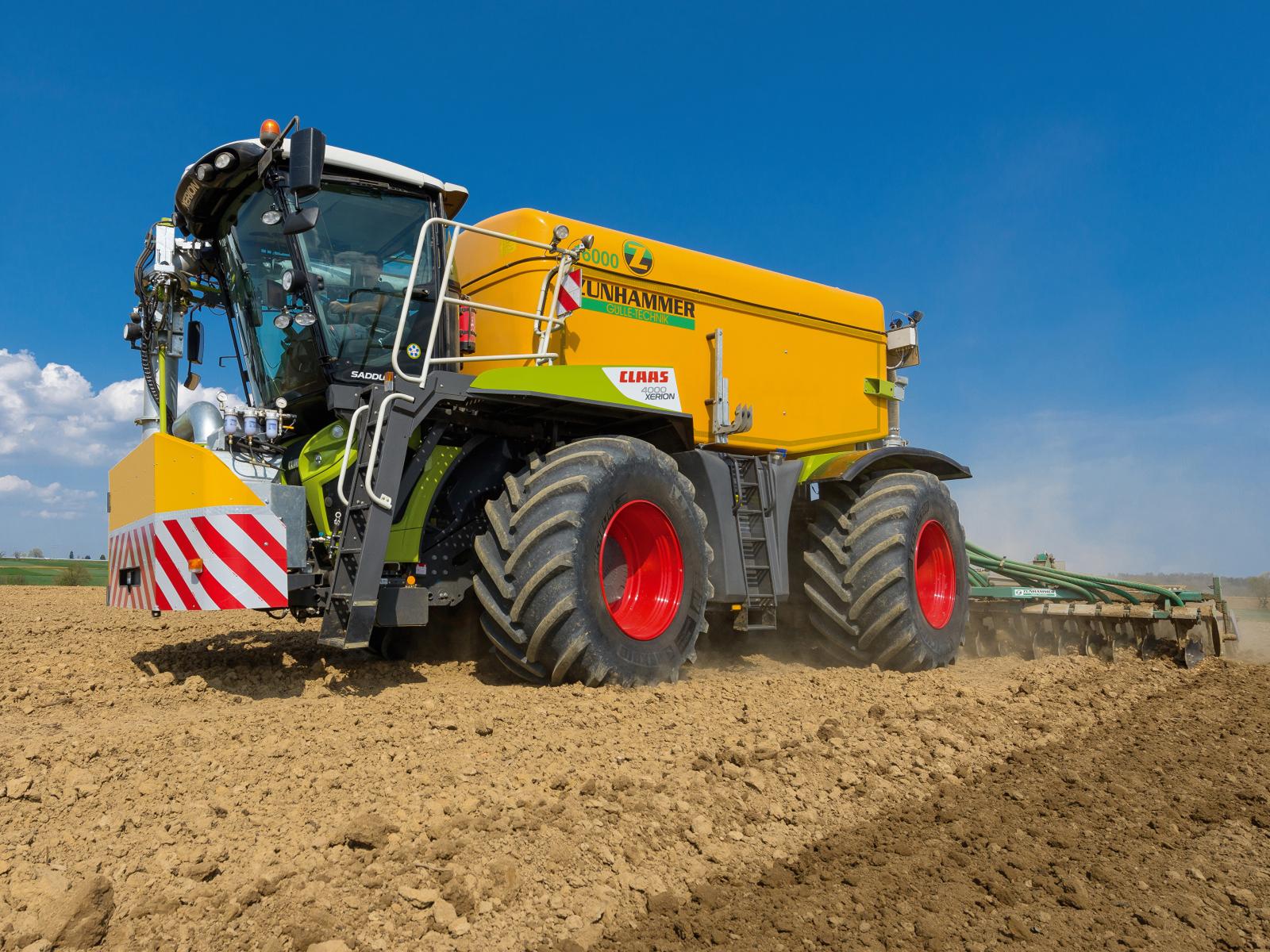 Wallpaper Large combine plows a field under a blue sky