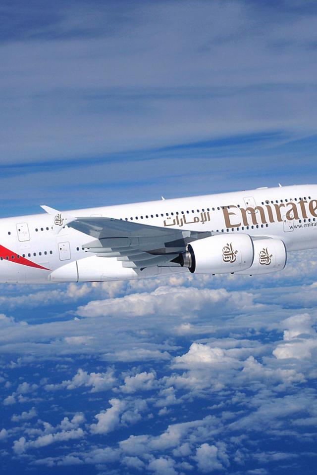 Wallpaper Airliner Airbus A380 Emirates airline flight above the clouds
