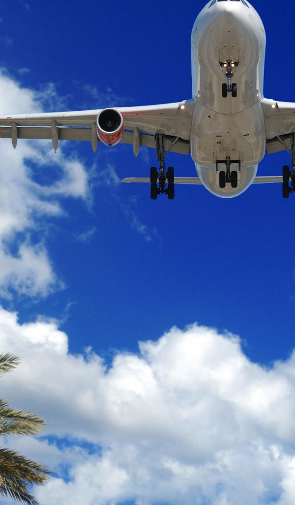 Wallpaper Embraer airliner flying over palm trees