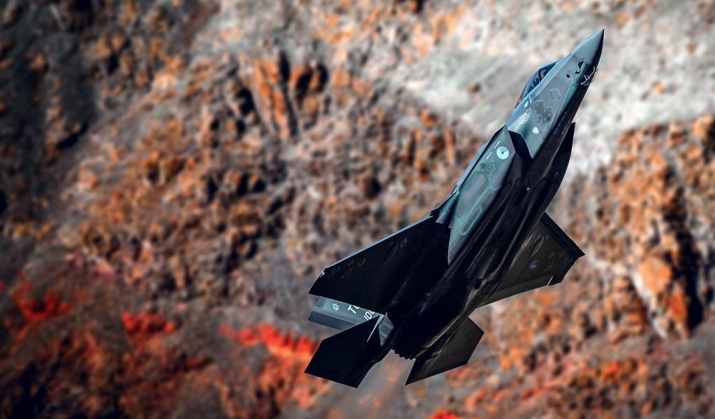 Wallpaper Black fighter F-35A Lightning II on the background of mountains