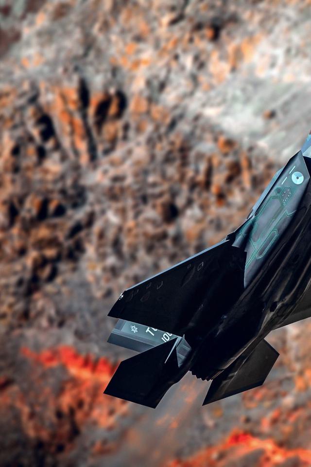 Wallpaper Black fighter F-35A Lightning II on the background of mountains
