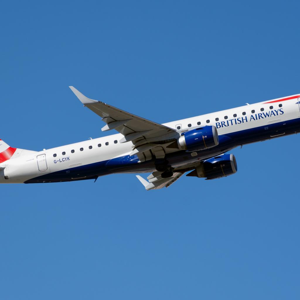 Wallpaper British Airways Embraer ERJ-190 passenger plane in the sky