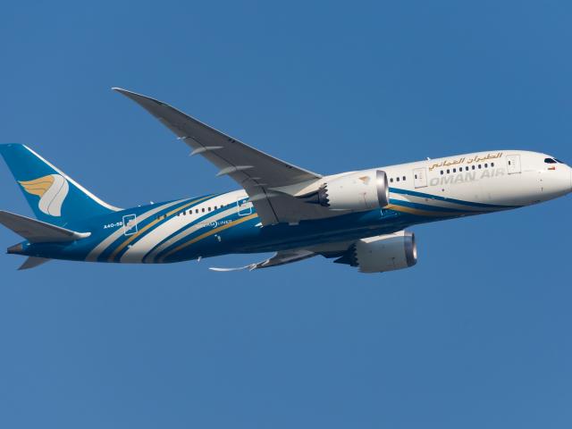 Wallpaper Oman Air passenger Boeing 787-8 in the blue sky