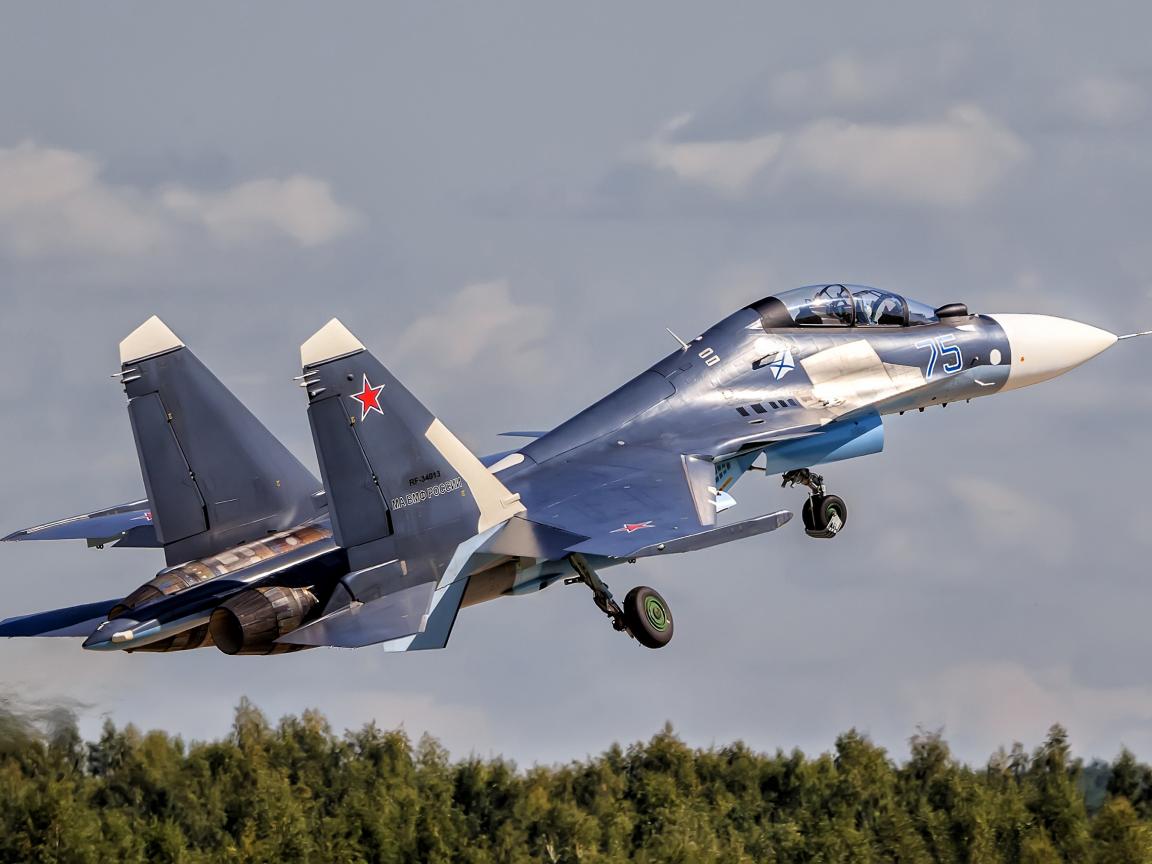 Wallpaper Su-30 Su-30SM fighter takes off into the sky
