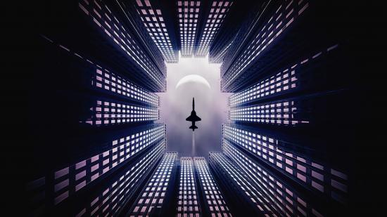 Wallpaper Airplane flies over skyscrapers