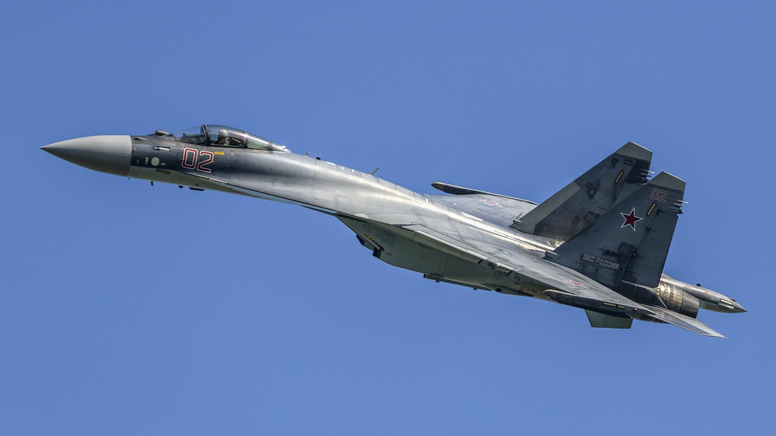 Wallpaper Flight of the Russian Su-35 fighter in the sky