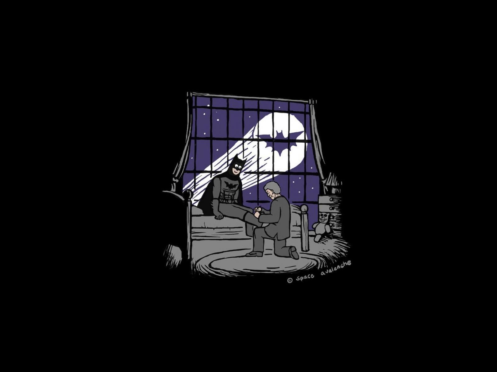 Wallpaper Assistant tying shoelaces Batman, black background