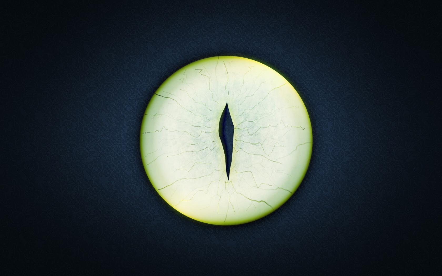 Wallpaper Round green eyes on a black background