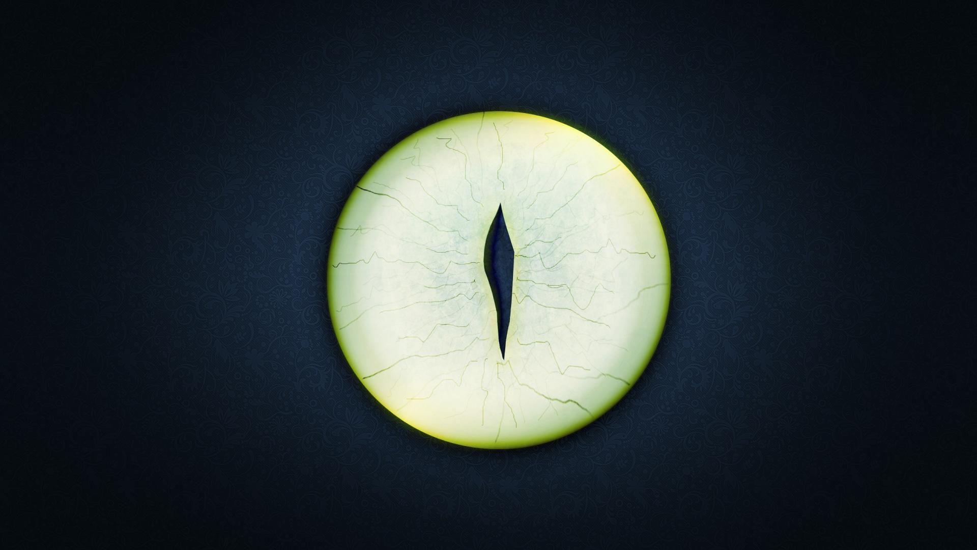 Wallpaper Round green eyes on a black background