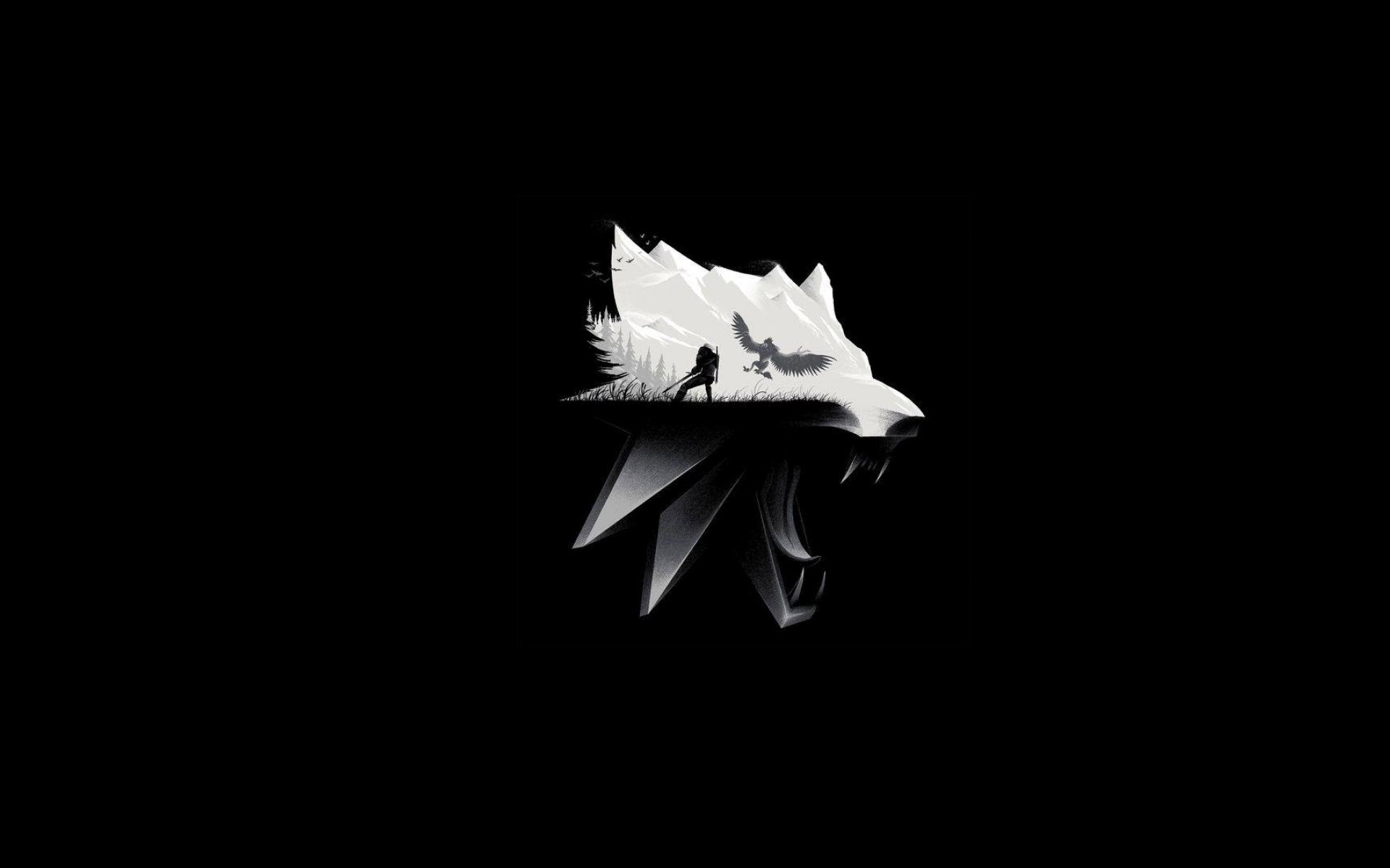 Wallpaper White head of a wolf on a black background