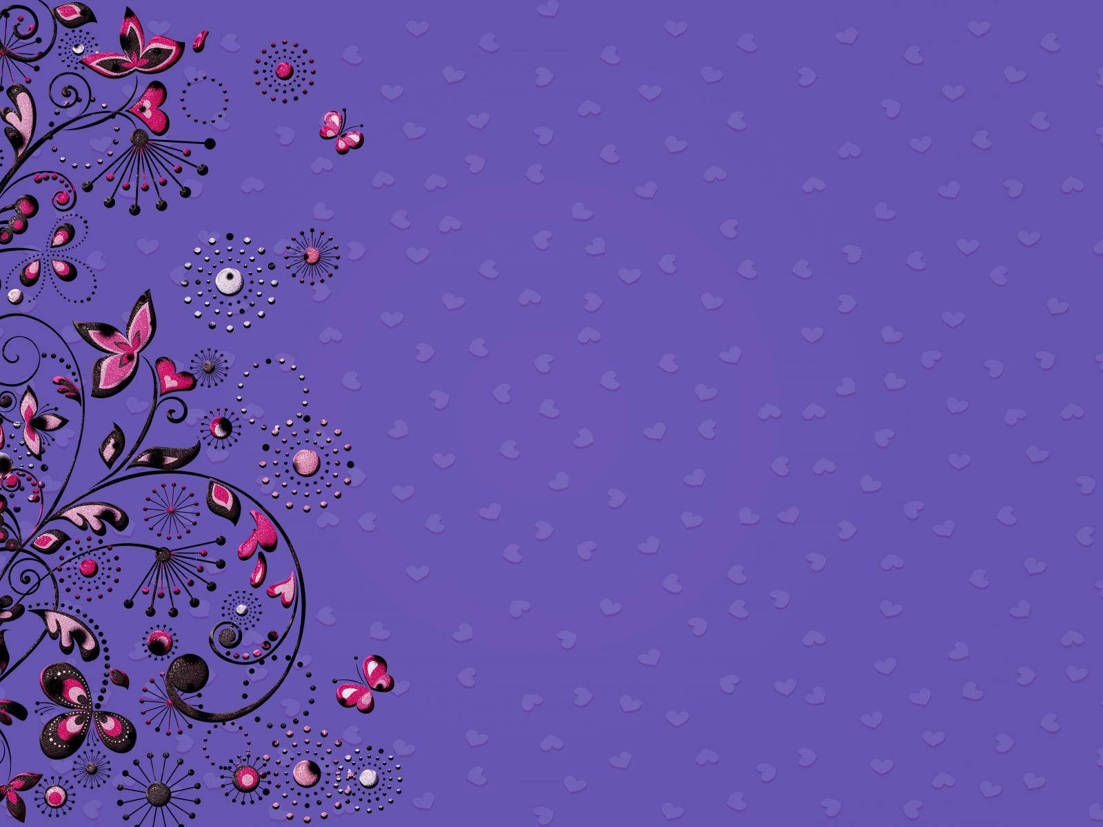 Wallpaper Patterns with butterflies and hearts on a violet background