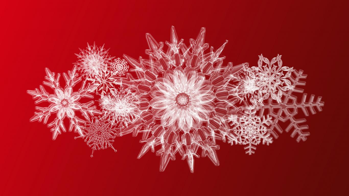 Wallpaper Beautiful ice snowflakes on a red background